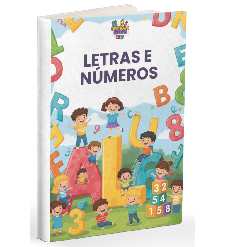 Fichas de treino que ensinam a reconhecer, escrever e relacionar letras e números, de forma visual e prática.